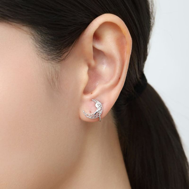 1周年の特別な想いを、二つの月が優しく包み込む、洗練されたイヤリングです。