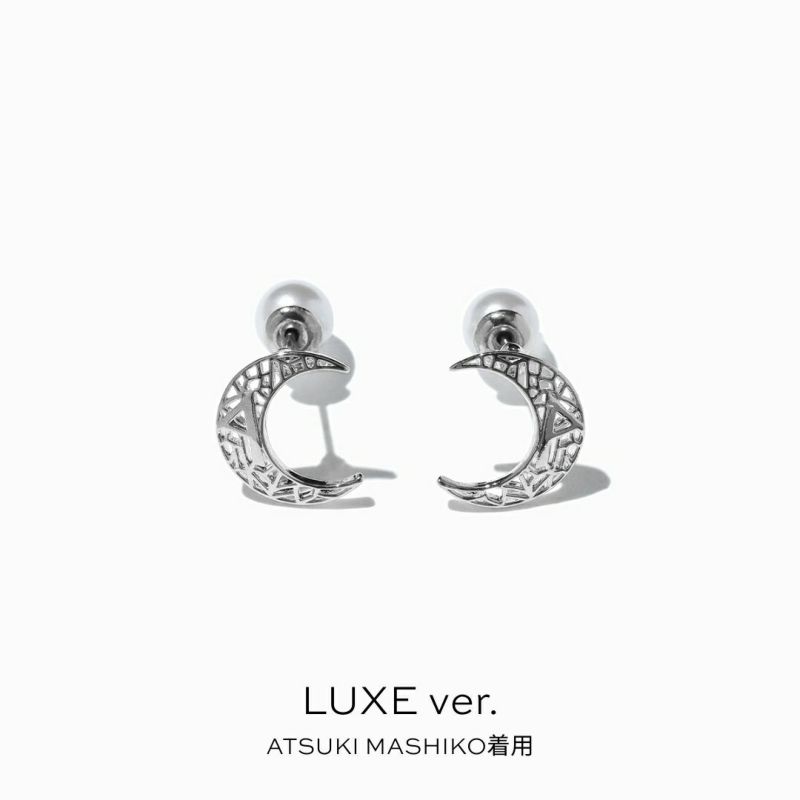 キャッチには満月をイメージしたパールを使用し、サイドやバックスタイルでも美しく見えるデザインです。