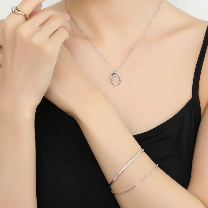バングルには垂れるチェーンが付いており、スクエアチェーンを使用して抜け感をプラスしています。2つの月が重なり合うように2種類のラインが組み合わさり、単品でもレイヤードスタイルを叶える一品です。