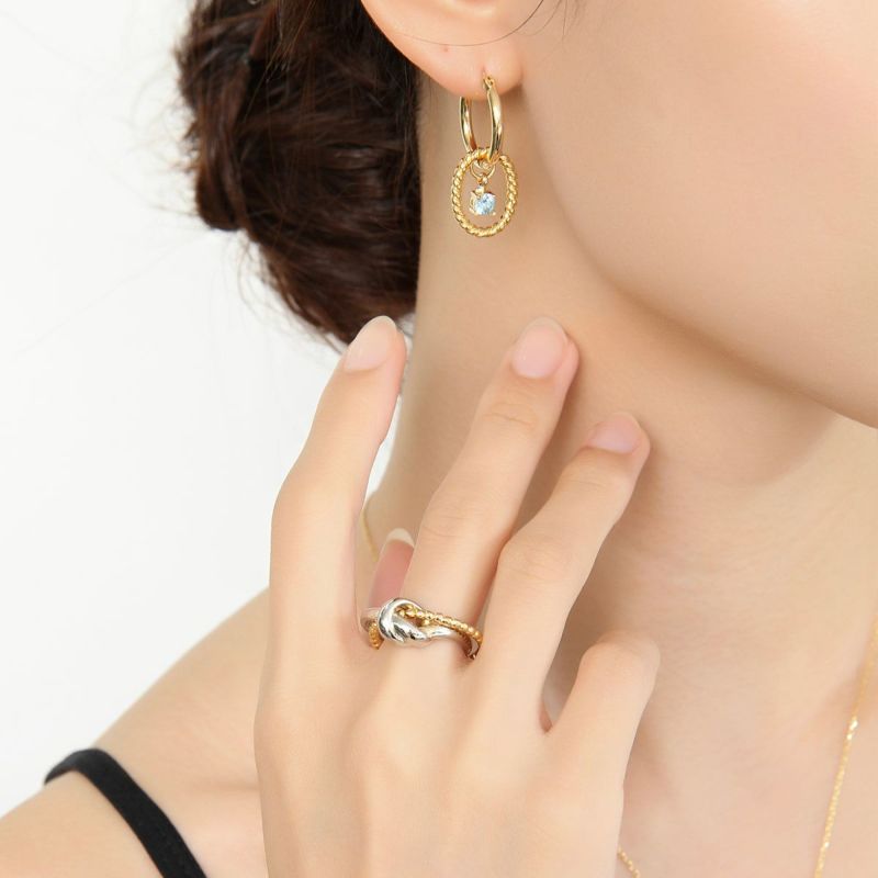 2本のリングが重なったミックスカラーリングは、月が重なったようなデザインに。ノーマルラインにメタルボールを連ねたデザインリングがクロスし、立体感とデザイン性をプラス。