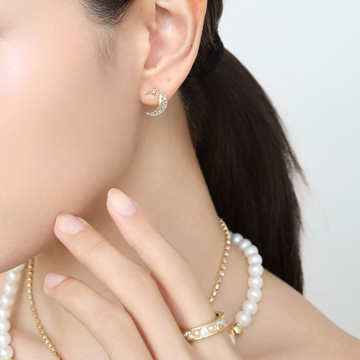 他の画像を見る 二つの月がのぞき込む、2Wayイヤリング。 A & Moon Earrings(Gold)-LIGHT ver.- 特別価格 ¥ 5,500 税込 販売期間 2025/07/13 11:00 〜 カートに入れる お気に入りに登録する