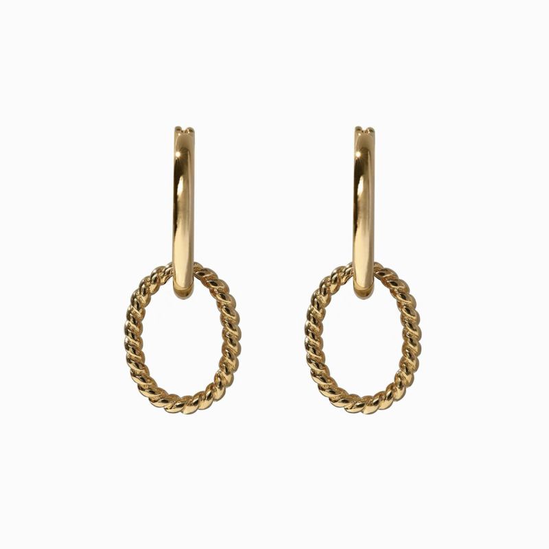 フレームとストーンは取り外し可能のため、付け替えすることで、4つのスタイルでお楽しみいただけます。大きすぎず太すぎないフープは、オフィススタイルにもぴったりです。