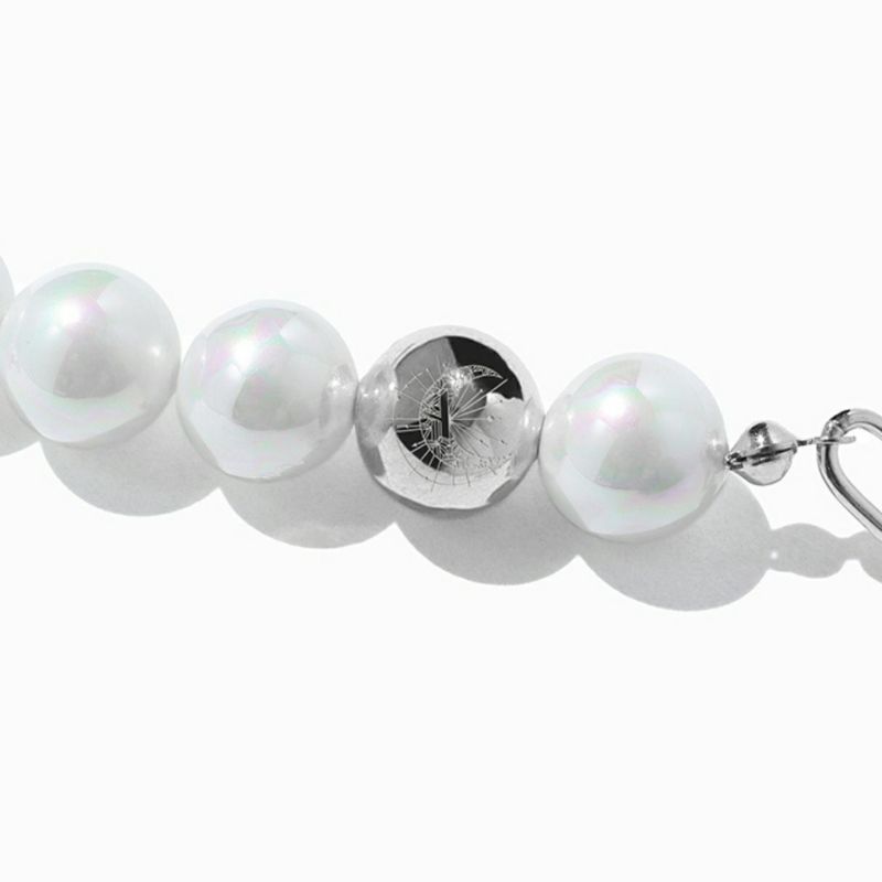 満月をイメージした大きめのシェルパールと、1st Anniversaryロゴを刻印したメタルボールがポイントのブレスレット。