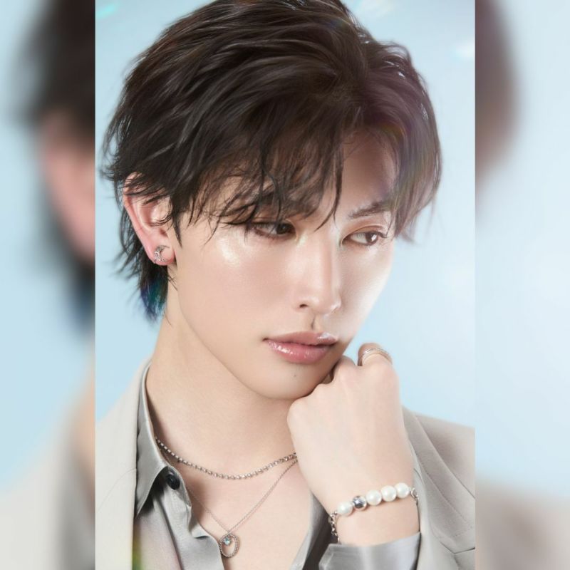 満月をイメージした大きめのシェルパールと、1st Anniversaryロゴを刻印したメタルボールがポイントのブレスレット。