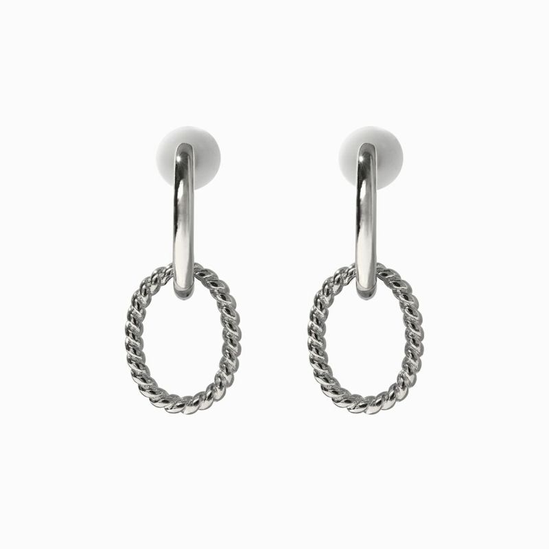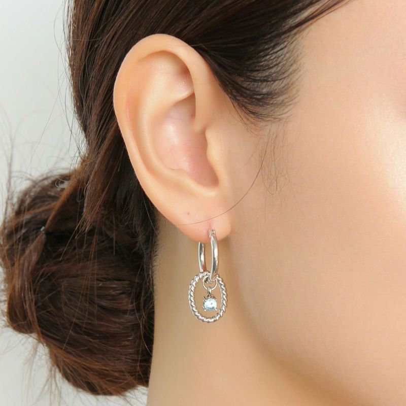 フレームとストーンは取り外し可能で、付け替えることで4つのスタイルを楽しむことができます。大きすぎず太すぎないフープは、オフィススタイルにもぴったりです。また、クリップ部分はシリコン付きなので耳への負担も軽減されます。